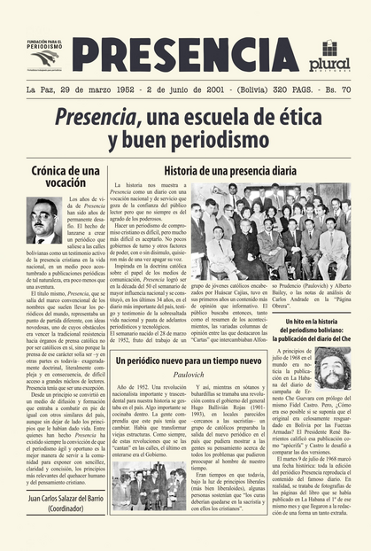 "La historia del diario católico Presencia está íntimamente ligada a la historia de Bolivia, en una época de grandes turbulencias políticas. Nació en un tiempo nuevo, en pleno parto de la Revolución Nacional, y fue testigo de la lucha de los bolivianos por la conquista de la democracia de las décadas siguientes. Testigo y protagonista, porque siempre estuvo presente con su voz orientadora en la defensa de los valores democráticos y los derechos humanos, civiles y políticos [...] [El libro] no pretende ser una historia completa y definitiva de ese periódico, sino un esbozo que intenta rescatar del olvido los testimonios de la gente que hizo posible esa maravillosa experiencia. El libro recoge también la visión de los periodistas del convulso medio siglo del que fueron testigos privilegiados –la “historia de una diaria presencia”–, traducida en la cobertura de la época en que Bolivia vivió la “pasión, muerte y resurrección de la democracia”. Al mismo tiempo, quiere ser un homenaje a grandes maestros del periodismo, como Huáscar Cajías Kaufmann y Alberto Bailey Gutiérrez, que convirtieron una modesta redacción en la escuela de periodismo de la que carecía Bolivia, y que hicieron del culto a la verdad, la justicia, la solidaridad y el servicio a los demás, es decir de los grandes principios de la ética periodística, la mejor seña de identidad a la que puede aspirar un medio de comunicación." (Cubierta del libro)