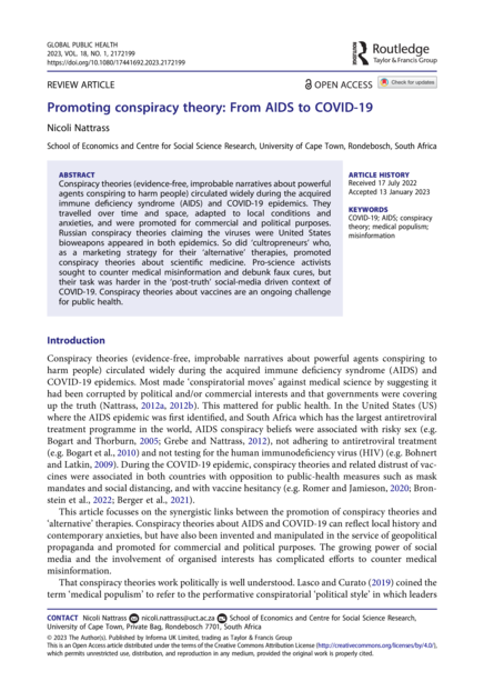 Promoting Conspiracy Theory: From AIDS to COVID-19