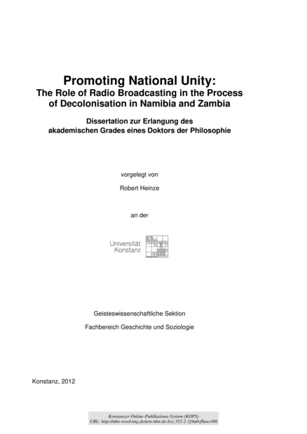 Promoting National Unity: The Role of Radio Broadcasting in the Process of Decolonisation in Namibia and Zambia