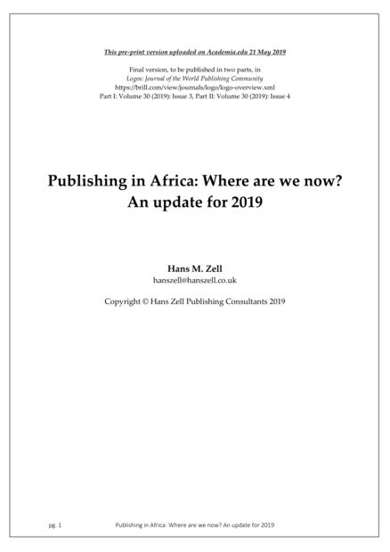 Publishing in Africa: Where Are We Now? An Update for 2019