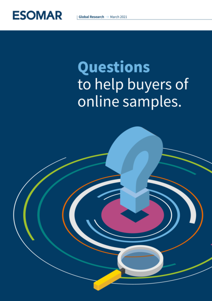 "This set of questions offers a framework for buyers to use when evaluating the offerings of different online sample providers. It updates and replaces the 2012 ESOMAR publication, 28 Questions to Help Buyers of Online Samples. The questions identify the key issues to consider, introduce consistent terminology, explain why each question should be asked, and note the issues buyers should expect to be covered in an answer. The intended use of these questions is that they form a basis for a conversation between buyer and sample provider, rather than simply being used as a checklist to compare offerings across providers. The questions do not cover B2B samples, nor do they attempt to cover specific requirements for different types of research such as pricing, new product development, ad testing etc. When online access panels were first introduced in the 1990s, the model was relatively simple: a buyer provided sampling specifications to a panel owner who drew a sample (from that panel). Over the intervening 25 years, online sample selection has changed in two fundamental ways. First, buyers can now access a a broader set of sources that now includes participants in loyalty programmes and rewards communities within “Get Paid To’ sites, customer lists, intercepts from offer walls, affiliate networks, social media, and other platforms, as well as traditional panels that may or may not be owned by the provider. Second, buyers have the option to access these sources directly via self-service tools, rather than relying on a sample provider to generate the sample on their behalf. There have been other important changes as well. Online research has become truly global and mobile devices have become a common data collection platform. The use of online samples has broadened beyond surveys to include qual/quant applications, communities, passive data collection, and so on. Concerns about privacy and data protection have led to a much-changed regulatory environment that imposes new requirements on both sample buyers and sample providers. Quality assurance techniques have become increasingly sophisticated. As a consequence, the number of issues that buyers must consider when choosing a sample provider has increased substantially." (Purpose and scope, page 3)