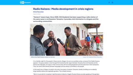 "Kwizera" means hope. Since 2020, DW Akademie has been supporting a radio station of the same name in northwestern Tanzania. It provides vital information to refugees and the surrounding communities." (Introduction)