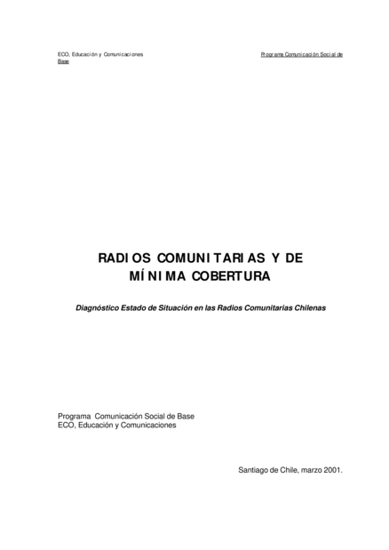 Radios Comunitarias y de Mínima Cobertura: Diagnóstico Estado de Situación en las Radios Comunitarias Chilenas
