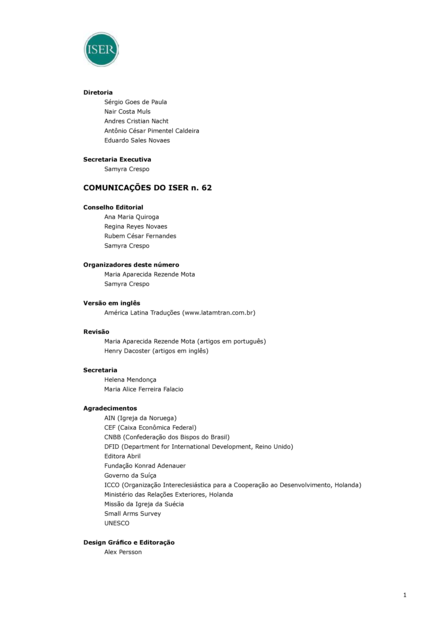 Rio de Janeiro: Instituto de Estudos da Religião (ISER) (2006), 85 pp.