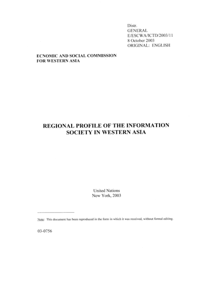 Regional Profile of the Information Society in Western Asia: Economic and Social Commission for Western Asia