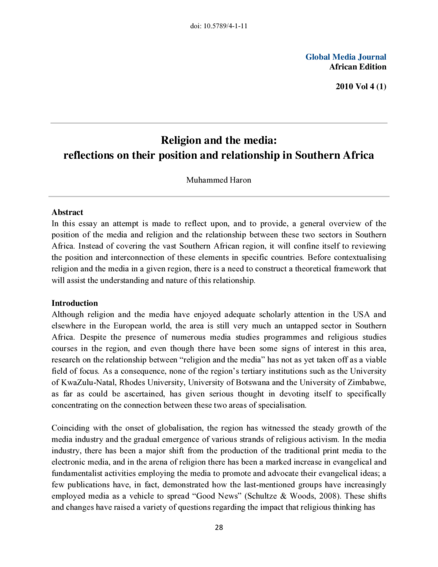 Global Media Journal - African Edition, volume 4, issue 1 (2010), pp. 28-50