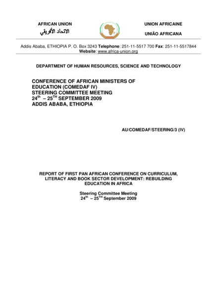 Report of First Pan African Conference on Curriculum, Literacy and Book Sector Development: Rebuilding Education in Africa. Conference of African Ministers of Education (Comedaf IV). Steering Committee Meeting, Addis Ababa, Ethiopia 24th–25th September, 2009
