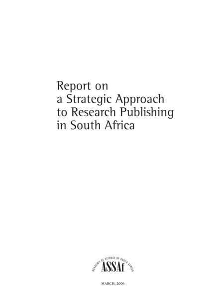 "Commissioned by the Department of Science and Technology of the government of South Africa, this is a major study of the present state of research publishing policy and practice in South Africa. The goal of the six-chapter report is to help to "develop and maintain a robust national system of innovation that contributes materially to the sustainable prosperity of all South Africa's people." Individual chapters cover a bibliometric assessment of South African research publications; a comprehensive analysis of South African research journals; a survey of journal editors' opinions; and an analysis of global e-research trends and their implications for South African research publishing, both in print and online formats. The final chapter sets out conclusions and recommendations for a strategically enhanced role of research publishing in South Africa. It recommends that all stakeholders in the South African research enterprise should each in their own way support local/national research journals that actively seek to be of international quality and are indexed in an internationally recognised, bibliometrically accessible database, through following best-practice in editorial judgment and peer review. Among other main recommendations of the report are: that funds should be allocated from the grants made by the Department of Education for research publication to support scholarly publishing in South Africa; that the Department of Science and Technology should take responsibility for ensuring that Open Access initiatives are promoted to enhance the visibility of all South African research articles and to make them accessible to the entire international research community, including the development of research repositories; and that the Academy of Science of South Africa be mandated to carry out external peer review and associated quality audit of all South African research journals in five-year cycles, and act as a support and quality control body for scholarly publishing." (Hans M. Zell, Publishing, Books & Reading in Sub-Saharan Africa, 3d ed. 2008, nr. 970)
