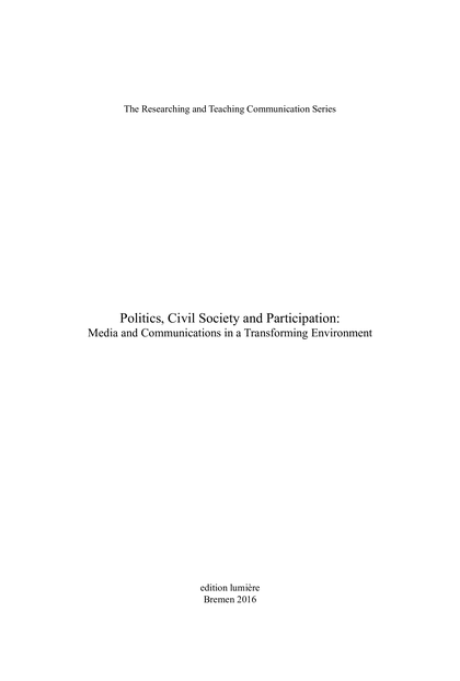 In: Politics, Civil Society and Participation: Media and Communications in a Transforming Environment