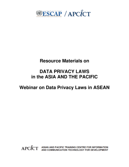 Resource Materials on Data Privacy Laws in the Asia and the Pacific: Webinar on Data Privacy Laws in ASEAN
