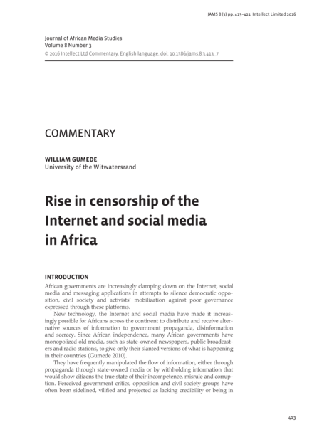 Journal of African Media Studies, volume 8, issue 3 (2016), pp. 413-421