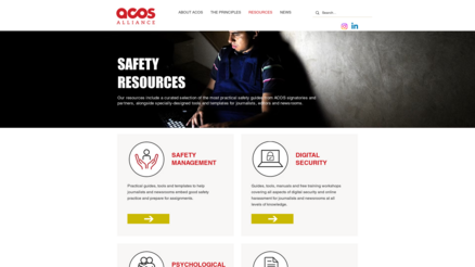 "Our resources include a curated selection of the most practical safety guides from ACOS signatories and partners, alongside specially-designed tools and templates for journalists, editors and newsrooms." (https://www.acosalliance.org/resources)