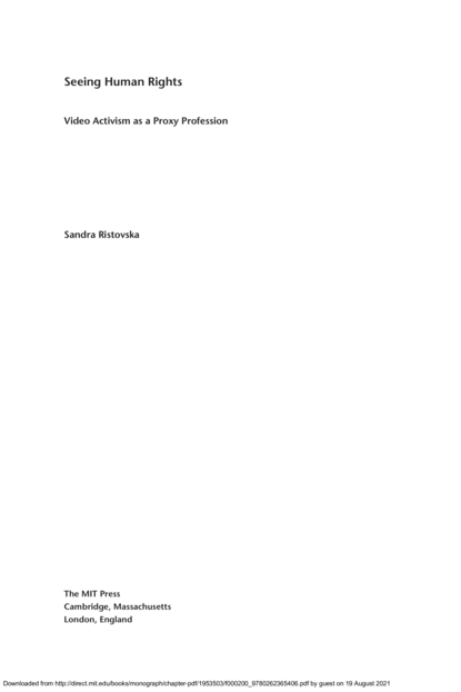 "Visual imagery is at the heart of humanitarian and human rights activism, and video has become a key tool in these efforts. The Saffron Revolution in Myanmar, the Green Movement in Iran, and Black Lives Matter in the United States have all used video to expose injustice. In Seeing Human Rights, Sandra Ristovska examines how human rights organizations are seeking to professionalize video activism through video production, verification standards, and training. The result, she argues, is a proxy profession that uses human rights videos to tap into journalism, the law, and political advocacy." (Publisher description)