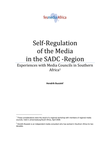 Self-Regulation of the Media in the SADC Region: Experiences with Media Councils in Southern Africa