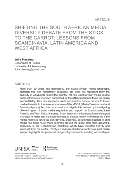 African Journalism Studies, volume 38, issue 1 (2017), pp. 66-84