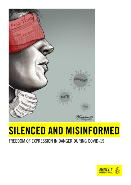 "[...] governments have put up barriers to activities like reporting and sharing opinions and used the pandemic as a pretext to muzzle critical voices. Amnesty International is concerned that Covid-19 related restrictions are not just temporary measures but are part of an ongoing onslaught on human rights and civic space. In addition, misinformation on different aspects of the pandemic has contributed to behaviours such as vaccine hesitancy. The overabundance of false and misleading information, facilitated by social media platforms, makes it harder than ever for individuals to form a fully informed opinion and make choices about their health based on the best available scientific facts. The report ends with a list of recommendations, urging States to stop using the pandemic as an excuse to silence independent reporting, debate and scrutiny and urgently lift all undue restrictions as a key approach to protecting the right to health and enabling an inclusive recovery. States should also provide credible, reliable, accessible, objective and evidence-based information, enable independent, public interest journalism and independent civil society, and engage diverse communities. Amnesty International urges social media companies to also take measures to address the viral spread of misinformation, including by improving the transparency and oversight of their business practices, policies and procedures." (Back cover)