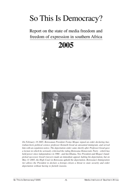 So This is Democracy? Report on the State of Media Freedom and Freedom of Expression in Southern Africa 2005