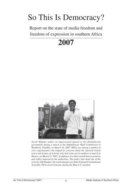 So This is Democracy? Report on the State of Media Freedom and Freedom of Expression in Southern Africa 2007