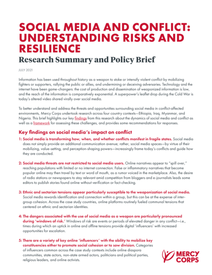 Social Media and Conflict: Understanding Risks and Resilience. Research Summary and Policy Brief