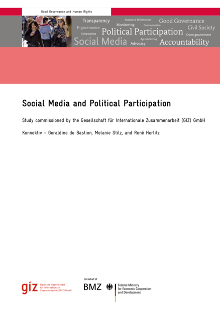 "The study will begin by defining and classifying social media and will go on to explain the reach and role of these media in developing contexts, in particular when used for political communication, interaction and decision-making processes. In a second chapter, risks and benefits of social media and political participation in developing contexts will be reviewed. The heart of the study will be the third chapter, where 10 case studies will demonstrate the bandwidth of use of social media for political participation. The case studies offer insight into different forms of citizen to government and government to citizen interaction using different types of social media. They have been authored by people directly involved as creators or users of the projects featured from different countries in Asia, Latin America and Africa. The study will provide an assessment on the impact social media can have on the work of German development cooperation in the area of good governance and conclude with a set of recommendations how to incorporate social media into their good governance programmes." (Introduction, page 4)