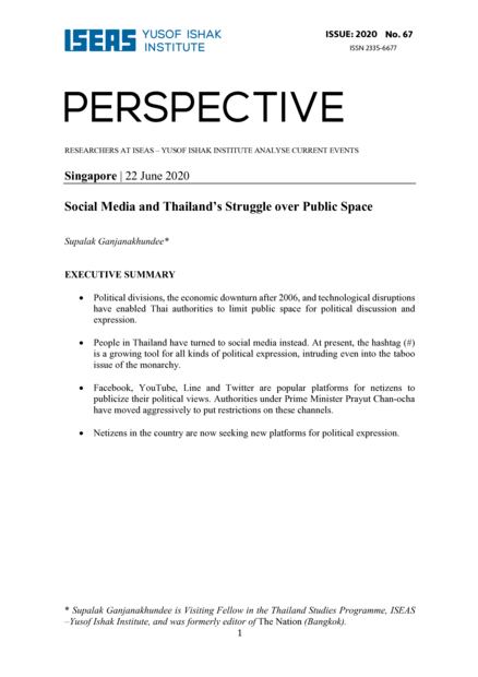 "Political divisions, the economic downturn after 2006, and technological disruptions have enabled Thai authorities to limit public space for political discussion and expression. People in Thailand have turned to social media instead. At present, the hashtag (#) is a growing tool for all kinds of political expression, intruding even into the taboo issue of the monarchy. Facebook, YouTube, Line and Twitter are popular platforms for netizens to publicize their political views. Authorities under Prime Minister Prayut Chan-ocha have moved aggressively to put restrictions on these channels. Netizens in the country are now seeking new platforms for political expression." (Executive summary)