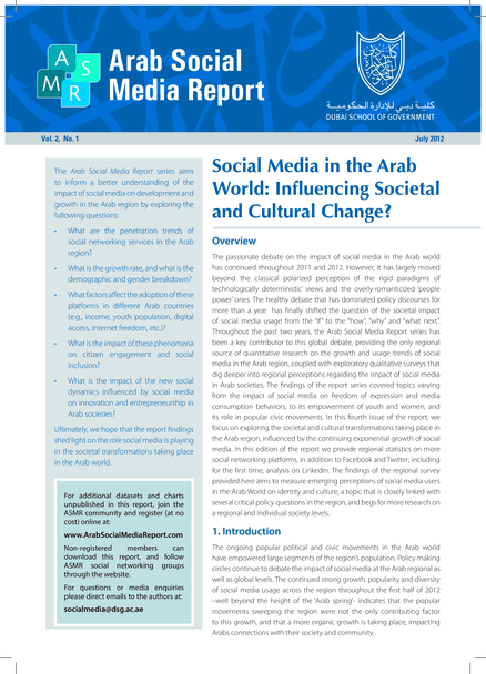 Arab Social Media Report (Dubai School of Government), volume 2, issue 1 (2012), 29 pp.