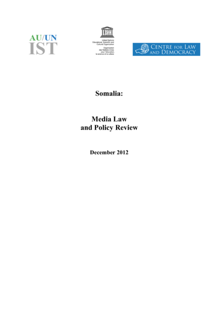 United Nations Information Support Team for Somalia (IST) African Union; Centre for Law and Democracy (CLD); Somali Media Support Group (SMSG); UNESCO (2012), 22 pp.