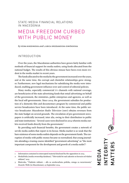 State-Media Financial Relations in Macedonia: Media Freedom Curbed with Public Money