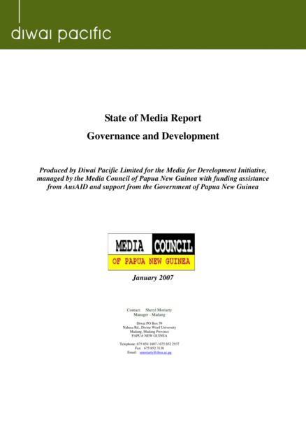 Madang: Media Council of Papua New Guinea; Diwai Pacific (2007), 126 pp.