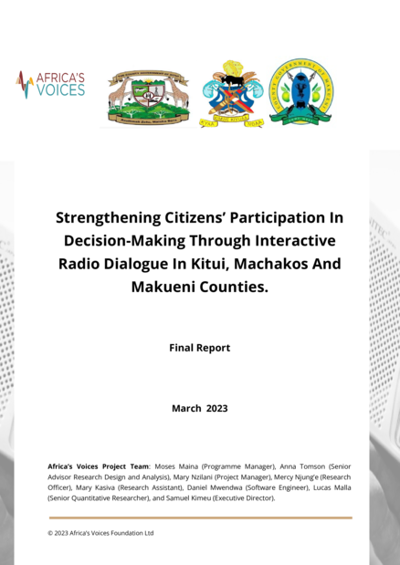 Nairobi; Cambridge (UK): Africa’s Voices Foundation (2023), 43 pp.
