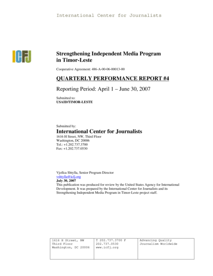 Strengthening Independent Media Program in Timor-Leste: Quarterly Performance Report, No. 4