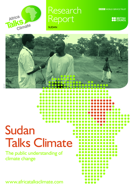 "In August 2009, the BBC World Service Trust’s Research and Learning Group, on behalf of the British Council, conducted research in northern and southern Sudan to gauge the public understanding of climate change. The research consisted of 12 focus group discussions with Sudanese citizens, as well as 18 in-depth interviews with opinion leaders from government, religious institutions, the private sector, the media and civil society. The overall objective was to find out what people think about climate change, and to determine how to tailor communication and media strategies to support Sudan’s response to climate change. Main findings and recommendations are presented in this report. Although some Sudanese in urban areas explain climate change with reference to scientific terms and concepts, most Sudanese outside of urban areas do not. Most Sudanese have noticed changes in the weather and seasons, and experienced drought, flooding, changes in rainfall and temperature increases, but do not associate these phenomena with global climate change." (https://www.gov.uk/research-for-development-outputs/sudan-talks-climate)