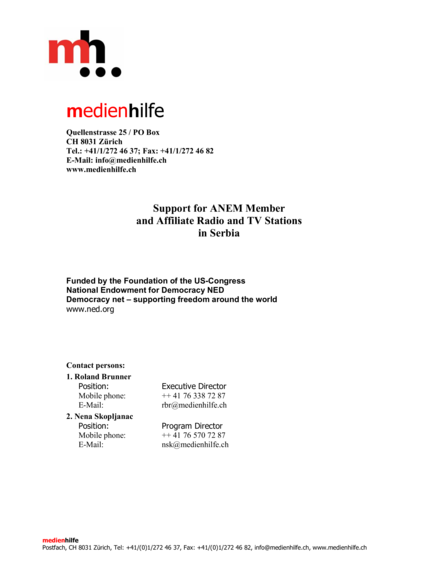 Support for ANEM Member and Affiliate Radio and TV Stations in Serbia