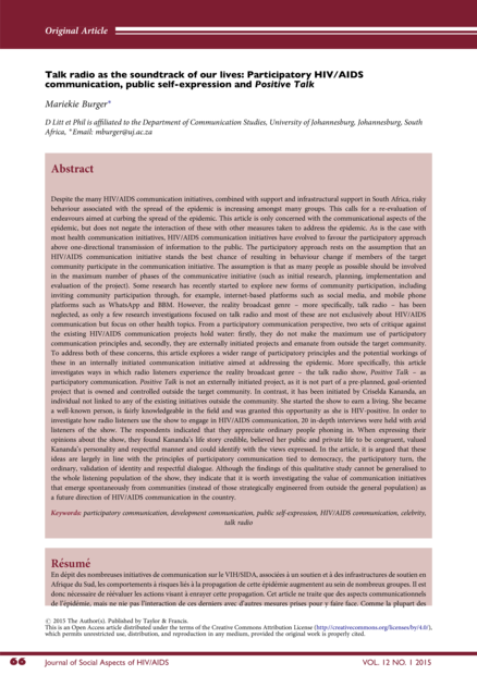 Talk radio as the soundtrack of our lives: Participatory HIV/AIDS communication, public self-expression and Positive Talk
