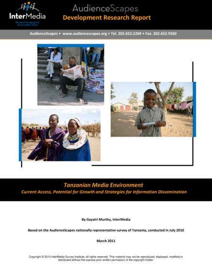 "This report uses AudienceScapes data from a nationally representative survey of Tanzania to describe how people of different social groups gather, share and access information through mass media. We also focus on whether the presence of mobile phones can further augment information dissemination using SMS and mobile radio. Media access and use trends are broken down by region and we profile both national and regional media outlets." (Page 5)
