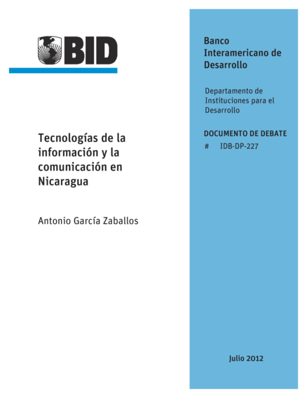 "El Gobierno de Nicaragua ha identificado las Tecnologías de la Información y Comunicación (TIC) como un pilar clave de su estrategia para mejorar la gestión pública y aumentar la competitividad; sin embargo, se encuentra en desventaja comparativa en materia de inversión, activos y resultados respecto a otros países de la región y del mundo. Este documento de discusión presenta un argumento sobre el rol de las TIC en la agenda del desarrollo, describe un diagnóstico del estado actual de la penetración y uso de las TIC en Nicaragua, e identifica los principales retos y desafíos. El documento aborda el tema en un contexto comparativo regional y global, para facilitar la evaluación de la situación del país. A la vista de los datos y análisis presentados, se mencionan opciones de política que podría explorar el gobierno de Nicaragua para enfrentar los desafíos identificados en aspectos institucionales, regulatorios, de despliegue de infraestructuras y de generación de la demanda, mediante el desarrollo de servicios y aplicaciones que respondan a las necesidades y prioridades de individuos, empresas y el gobierno. El documento concluye con una serie de recomendaciones de política específicas que facilitarían la inserción del país en la economía digital." (Resumen)