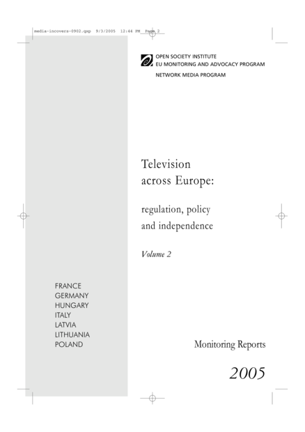 Television Across Europe: Regulation, Policy and Independence. Vol. 2: France, Germany, Hungary, Italy, Latvia, Lithuania, Poland
