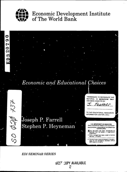 Washington, DC: World Bank; Economic Development Institute (EDI) (1989), xi, 219 pp.