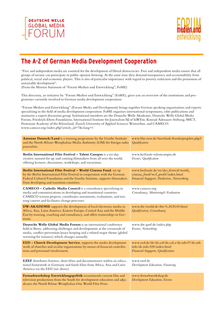 Bonn: Forum Medien und Entwicklung (fome); Deutsche Welle Global Media Forum (2009), 3 pp.