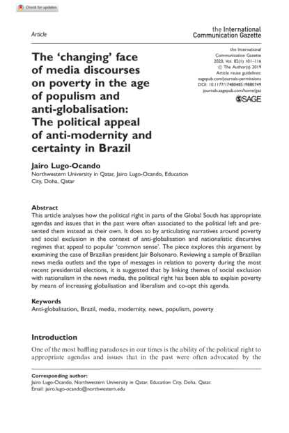 The ‘changing’ Face of Media Discourses on Poverty in the Age of Populism and Anti-Globalisation: The Political Appeal of Anti-Modernity and Certainty in Brazil