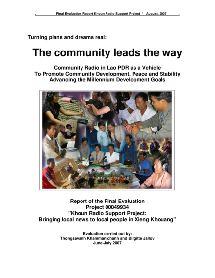 The Community Leads the Way: Community Radio in Lao PDR as a Vehicle to Promote Community Development, Peace and Stability Advancing the Millenium Development Goals. Report of the Final Evaluation - Project 00049934 ”Khoun Radio Support Project: Bringing Local News to Local People in Xieng Khouang"