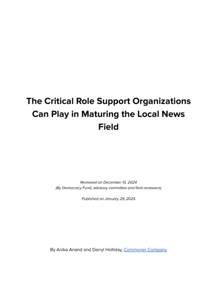 The Critical Role Support Organizations Can Play in Maturing the Local News Field