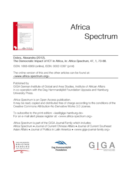 Africa Spectrum, volume 47, issue 1 (2012), pp. 73-88