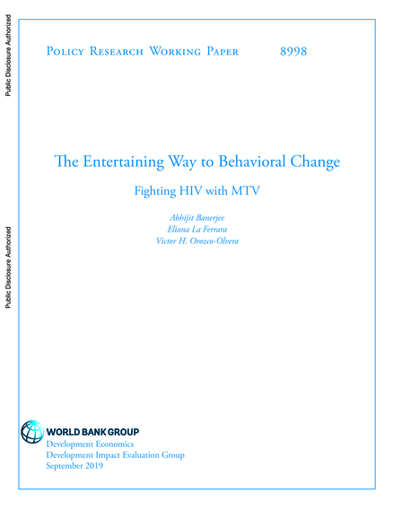 "This paper tests the effectiveness of an entertainment education television series, MTV Shuga, aimed at providing information and changing attitudes and behaviors related to HIV/AIDS. Using a simple model, the paper shows that “edutainment” can work through an individual or a social channel. This study is a randomized controlled trial conducted in urban Nigeria, where young viewers were exposed to MTV Shuga or a placebo television series. Among those exposed to MTV Shuga, the trial created additional variation in the social messages they received and the people with whom they watched the show. The study finds significant improvements in knowledge and attitudes toward HIV and risky sexual behavior. Treated subjects are twice as likely to get tested for HIV eight months after the intervention. The study also finds reductions in sexually transmitted diseases among women. These effects are stronger for viewers who reported being more involved with the narrative, consistent with the psychological underpinnings of edutainment." (Abstract)