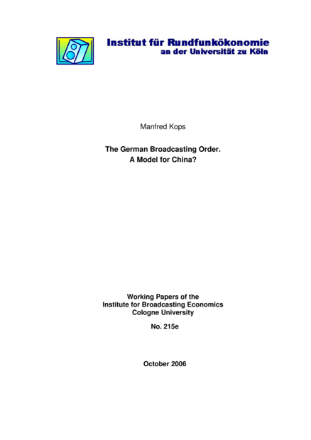 Köln: Institut für Rundfunkökonomie an der Universität zu Köln (2006), 53 pp.