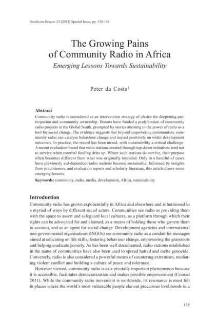 The Growing Pains of Community Radio in Africa: Emerging Lessons Towards Sustainability