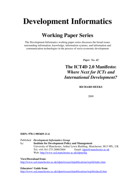 Manchester: Development Informatics Group Institute for Development Policy and Management University of Manchester (2009), 33 pp.