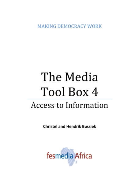 "This Tool Box is meant to help keep up the pressure on the authorities not just to pay lip service to the idea of free access to information but to implement it. It will describe in some more detail why such access is an essential citizen's right and how it can be exercised efficiently, without compromising other rights or legitimate concerns in the process. It will also look at those pieces of existing legislation that need to be reviewed to ensure open and transparent government." (Page 6)