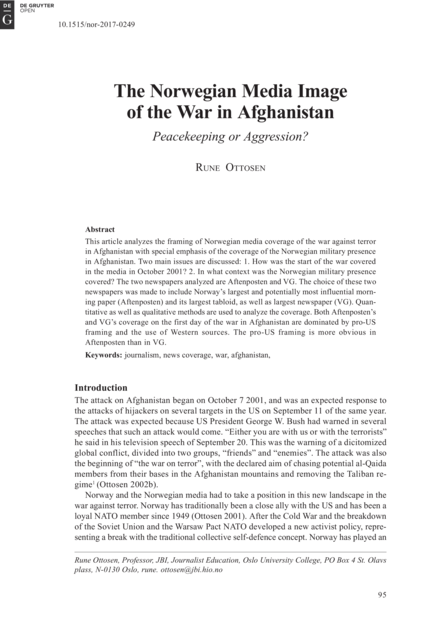 The Norwegian Media Image of the War in Afghanistan: Peacekeeping or Aggression?