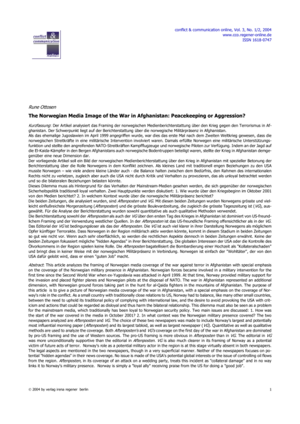 The Norwegian Media Image of the War in Afghanistan: Peacekeeping or Aggression?